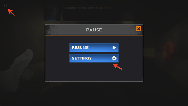 1、进入僵尸港湾游戏后,点击左上角的暂停按钮,然后在下方选择设置;