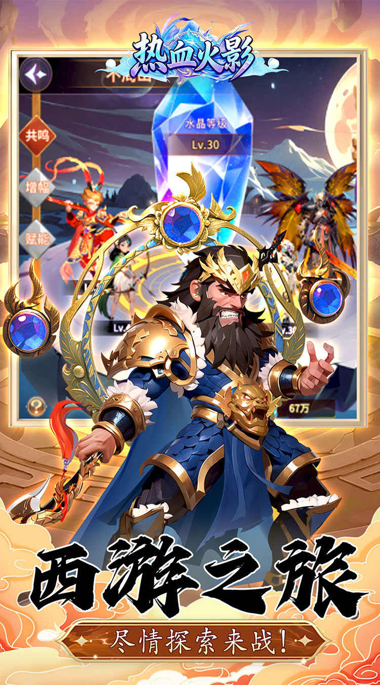 热血火影是一款以中国古典名着西游记为背景的策略卡牌游戏,玩家将扮演唐僧师徒中的一位,或是其他经典角色,通过收集和策略性地使用各种卡牌来展开冒险和战斗,游戏设定在一个神话般的西游世界中,可以体验到从峨眉山到西天的传奇旅程,游戏中融入了丰富的中国传统文化元素,在享受游戏乐趣的同时,也能领略到经典文学的魅力,诚邀您加入这场神话般的卡牌对决,与孙悟空、唐僧等经典角色一起,踏上一段非凡的西游之旅!