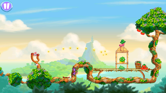 4、合理使用有限数量的小鸟,将场景中的所有绿猪消灭,就算成功闯过关卡。
