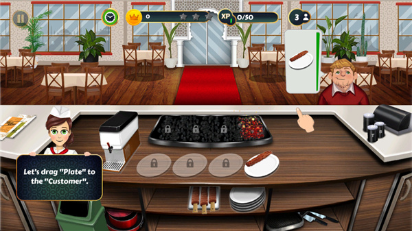 1、游戏玩法非常简单,首先你需要准备好所有必需的食材,接着,顾客就会陆续到来,你只需根据他们的需求,准备相应的食物即可。