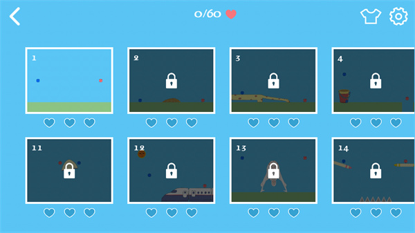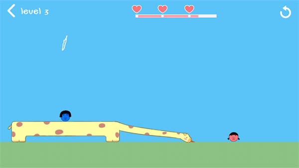 操作方法:通过画线引导蓝先生和红小姐走向彼此。游戏会根据玩家画线的多少,决定最终获得的爱心数量——线画得越少越高效,爱心越多。