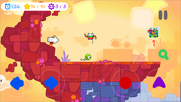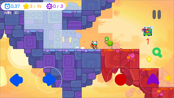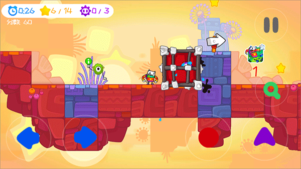 2、需要注意的一点是,要确保收集到所有的星星,也就是说,只有找到并拿到每一颗星星,才能顺利提高分数,这是拿到高分和三星通关的关键,因此玩家在游戏中一定要仔细观察和精准控制角色。