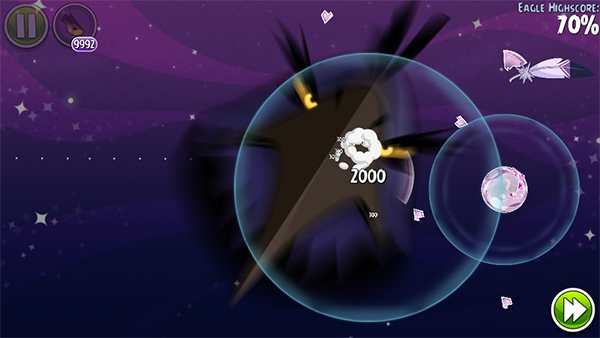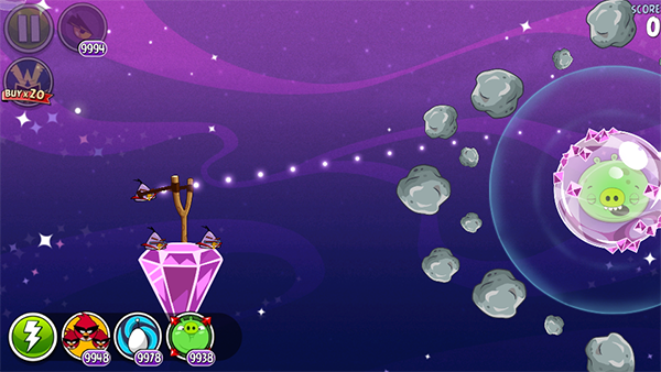 3、愤怒的小鸟太空版弹出的鸟儿会留下轨迹,可以将其作为调整角度和力度的参考。