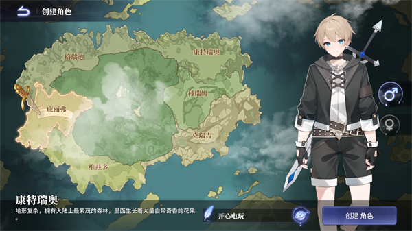 2、玩家可以自由创建自己的角色,右侧可以选择或更改角色性别,下方还有随机生成名字的功能,方便快速开始。