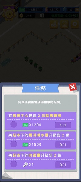 1、只需要不停地点击、建造、建造、再建造,吸引更多客户,扩大业务范围。