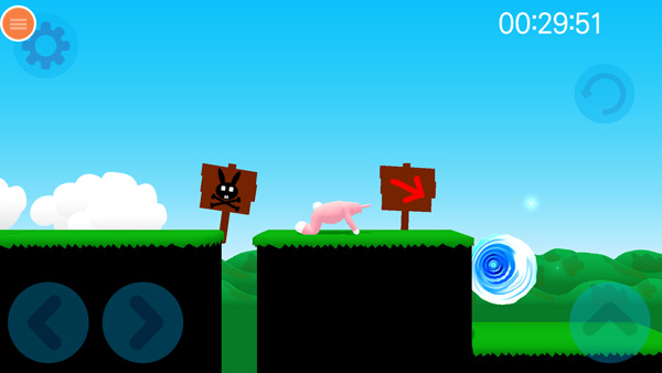 3、进入关卡后,先熟悉操作方式,左侧按钮用于控制兔子人的移动方向,右侧按钮则负责跳跃动作;