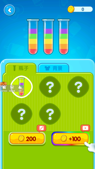 3、游戏中的瓶子有多种皮肤可选择,背景场景也会不断变化,完成解锁后可以尽情体验不同风格。