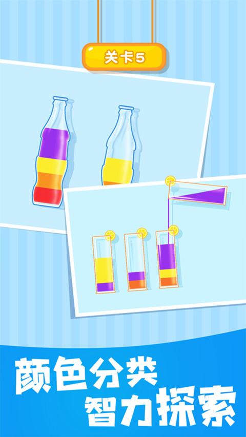 丰富的关卡不断推进,逐渐面对越来越困难的挑战,观察试管杯中的液体,掌握组装和组合的基本情况,理解简单的游戏规则,可以查看开头的文本信息来掌握规则,仔细重复使用空瓶子,任何浪费都可能导致失败,颜色区分非常清晰,只需查看颜色信息并进行操作即可,这种液体泄漏现象具有动态效果,能带来舒适且令人愉悦的视觉感受。