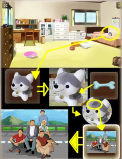 6、点击床上的狗玩偶,用骨头互动,得到照片(隐藏道具)。