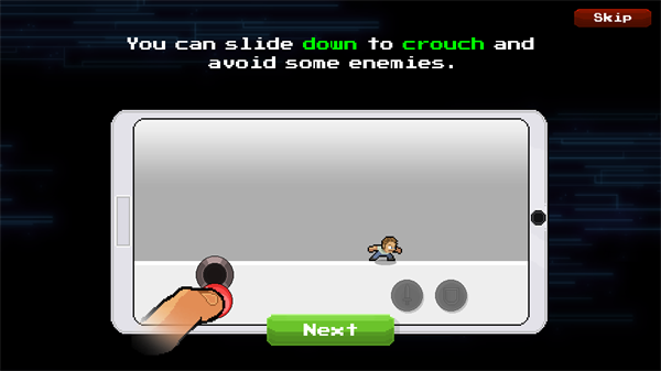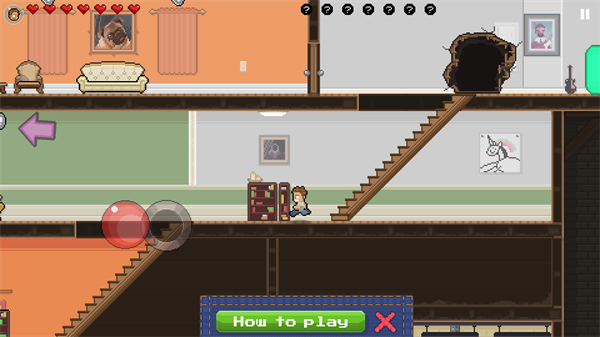 3、长按屏幕左侧即可向左移动角色,点击屏幕右侧则可以让角色跳跃,根据屏幕上的箭头提示前往指定的位置完成任务;