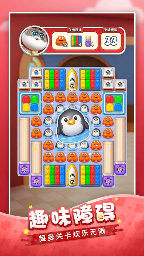 假日乐消消最新版玩着可以有效的打发时间,氛围悠闲,趣味性十足,玩着很是愉快,在游戏里玩家将扮演消除达人,根据关卡的要求进行闯关,玩家只有完成关卡设计的积分要求才能过关,挑战性极高,利用获取的道具可以玩的更加愉快,场景丰富,特效华丽,背景音乐也很悠闲,玩家可以沉浸式体验,感兴趣的玩家可以下载试一试。