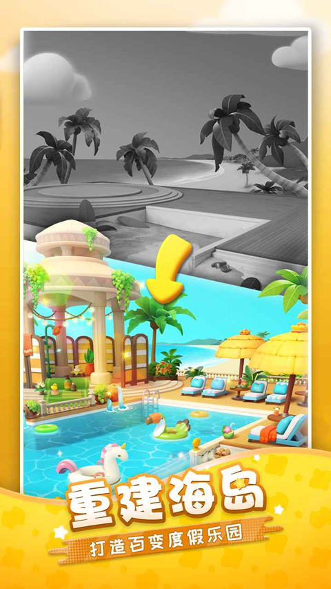 1、假日乐消消最新版独特的岛屿管理玩法允许玩家自由设计并装饰自己的度假岛屿。