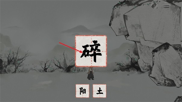 2、首先向右行进,靠近士兵并与其对话。然后依次长按以下四样物品,获取 “阳”、“土”、“卒” 和 “石” 四个汉字。