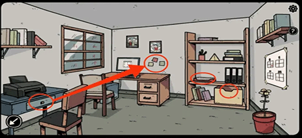 12、切换回卡丽莎视角,来到二楼,用红钥匙打开书房,先拿走书架上的A4纸和钥匙冰块,然后根据抽屉以及电脑旁的便签提示打开电脑。