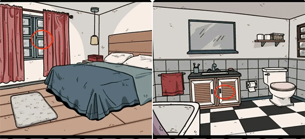 1、以卡丽莎视角开始,先观察卧室窗户上的符号(每个房间的窗户上都有类似的符号),这些符号后面会用到。同时四处搜索,在二楼卫生间的柜子里可以找到第一只收集要素。