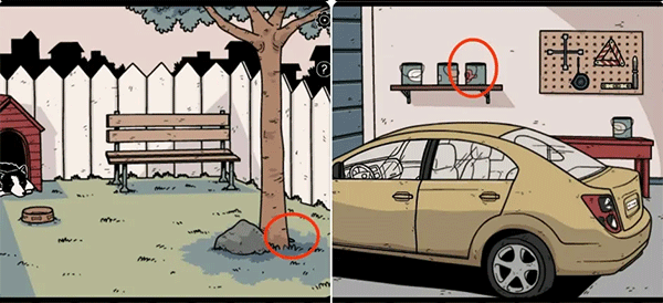 4、在后院拿走树根处的铁铲,然后前往车库,用铁铲打开架子上的颜料罐,获得一把钥匙。
