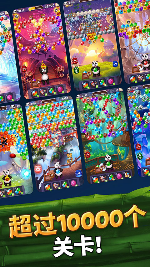 1、熊猫泡泡龙中文版游戏拥有超过1000个关卡,每个关卡的难度都有所不同,每周还会新增约20个新关卡。