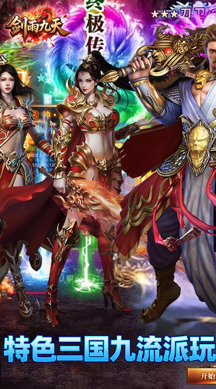 3、剑雨九天传世九职业免费版体验游戏中带给玩家的各种酷炫技能效果,以及角色服装上展示的特殊效果。
