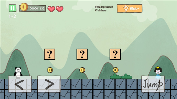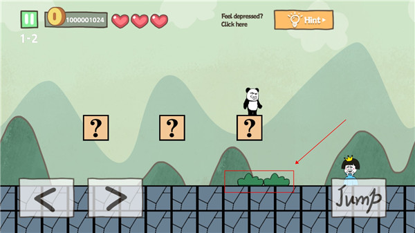 2、撞击问号方块可以获得金币,前两个方块没问题,但第三个下方会出现陷阱,这时候不要直接走,可以直接跳到方块上安全过去。