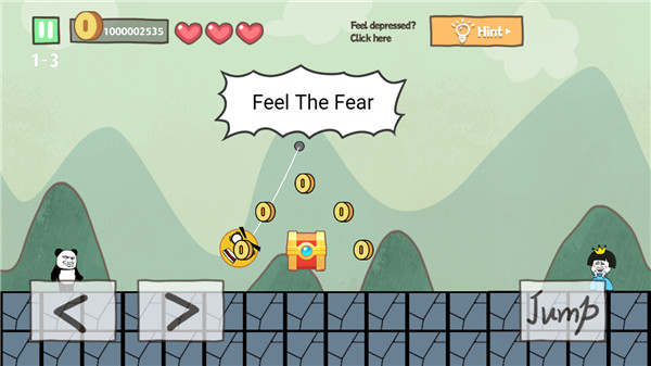 3、直接走是过不去陷阱的,一定要跳过去,过去后慢慢往前走,前面的路可能会突然断掉,再次用跳跃勾引隐形方块,就能顺利通过。