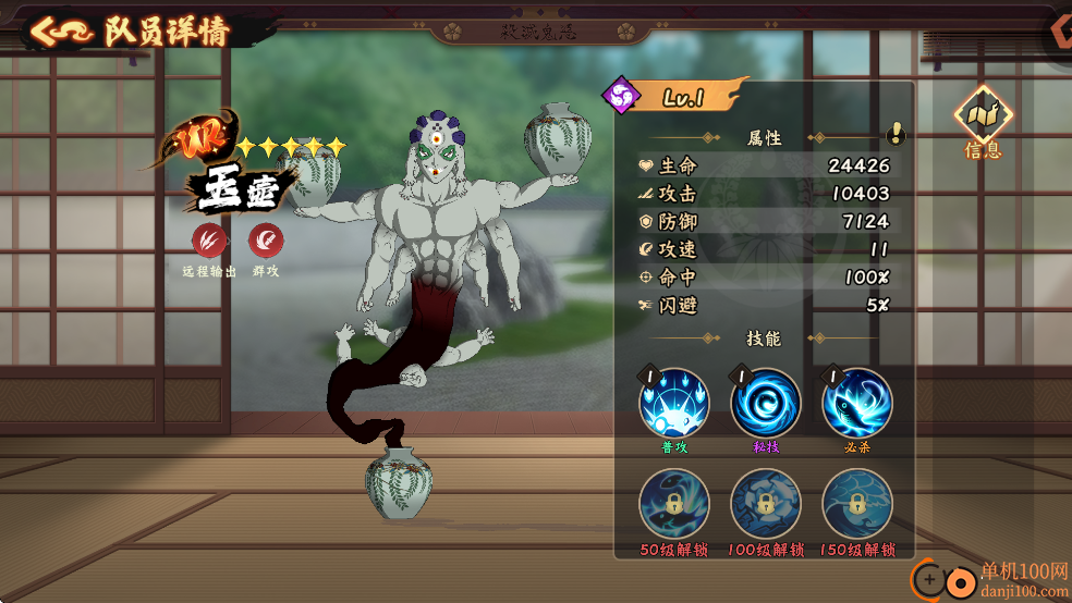 必杀技:【一万滑空粘鱼】对前方大范围敌人造成攻击力300%的伤害,同时有20%吸血效果,攻击命中目标时,有40%的概率附加[剧毒]状态,使敌人持续受到伤害。