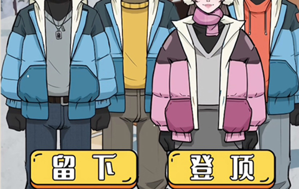 1、在第一个剧情选择中,会出现“留下”和“登顶”两个选项,请选择留下,以继续当前剧情线路。
