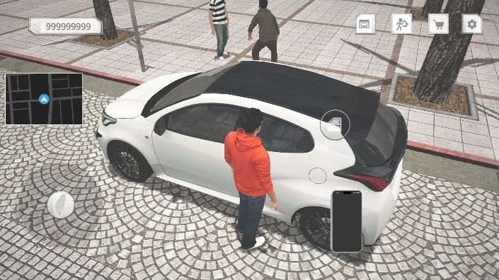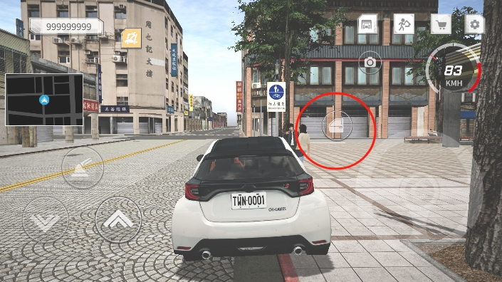 4、加载完成后会进入主场景,此时点击旁边的开门按钮上车,为驾驶做准备。