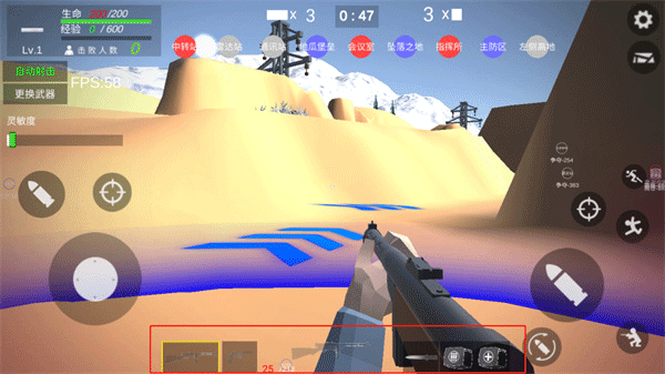 6、下方的按钮可用于切换武器和道具,根据战况灵活调整装备策略。