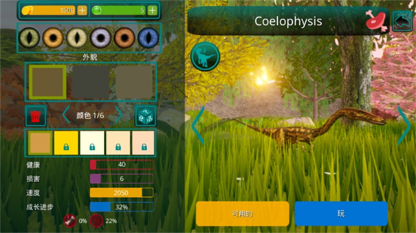 3、提供自定义装扮系统,玩家可以根据自己的喜好捏造专属恐龙形象,左侧的编辑栏让你调整各种外貌和颜色,打造独一无二的恐龙。