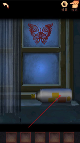 6、点击窗帘,获得喷漆罐这个道具,获得线索:红色的蝴蝶。