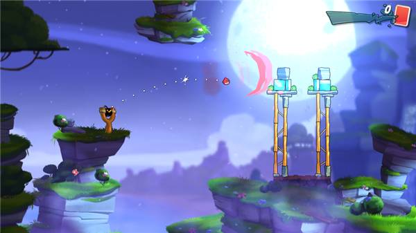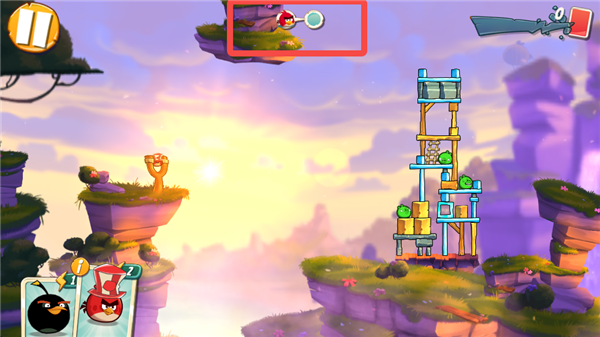 1、打开愤怒的小鸟2最新版,进入关卡后,玩家需要用手指或鼠标拖动左侧的弹弓,将小鸟精准弹射到右侧的猪身上。