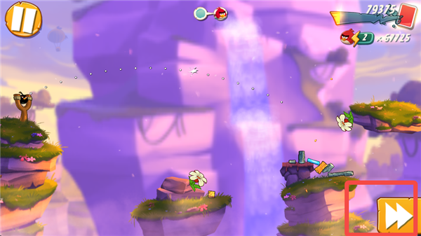 5、点击右下角的箭头按钮可以加快游戏速度,让小鸟飞行和猪的动作更快,节省过关时间。