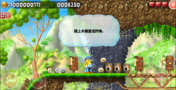 6、在闯关过程中还能获得各种奖励,跳上木桶并踩破即可获得宝藏;