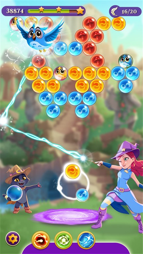 1、泡泡魔女传奇3在这场神奇的射击冒险中,消灭3个气泡即可使其爆炸。