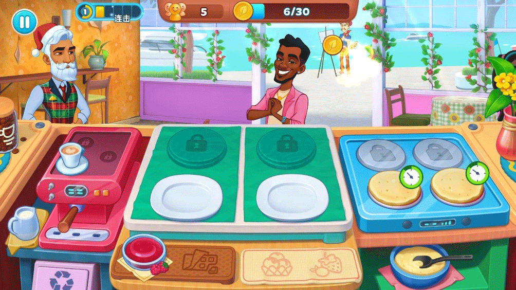 3、当顾客来到餐厅时,玩家需根据他们的订单制作美食,并在顾客耐心值耗尽前,将正确的餐点及时送达;