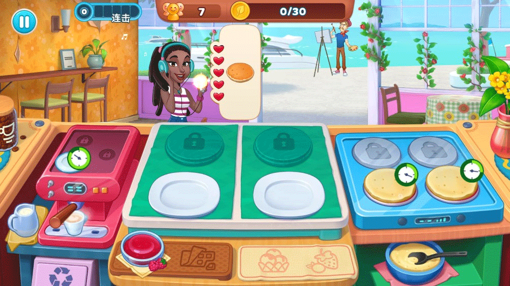4、顾客拿到正确料理后,会留下金币作为奖励,然后愉快离开;