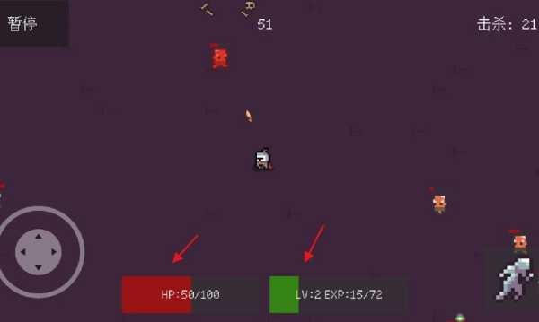 4、当红色血条被清空时,玩家角色就会死亡,因此要密切关注绿色经验条和红色血条的变化,稳步推进,一步步完成挑战。