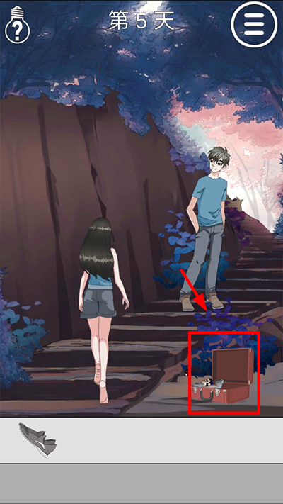 第5关:在右下角的箱子中得到三双鞋,把平底鞋递给女主即可完成任务。
