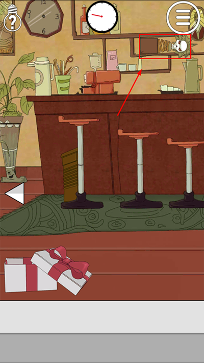 第3关:在第二个场景里,从吧台后方的展示柜中拿到骷髅,将骷髅放入下方的礼品盒中,就能得到礼品盒。之后让男主把礼品盒送给女主即可过关。