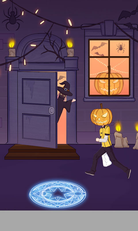 打开窗户,拿下南瓜头并戴上,敲门。