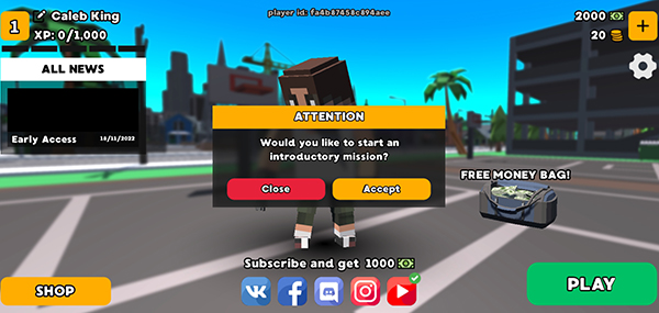 1、首次进入像素沙盒游戏时,可以点击“accept”按钮来进入剧情模式,跟随剧情逐步熟悉游戏内容。