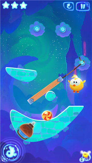 3、收集星星,在某些关卡中,星星会出现,玩家需要切断绳子。