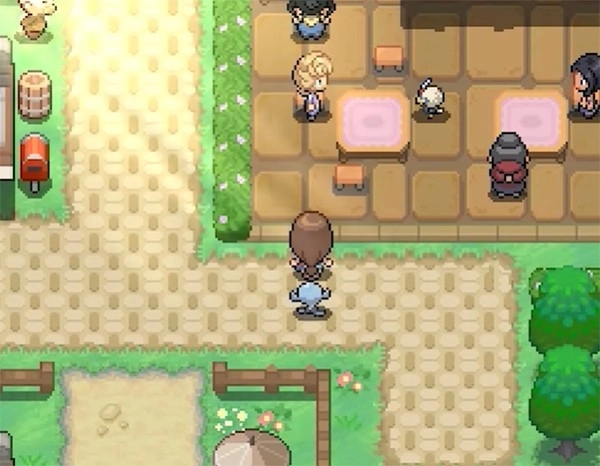 3、获得宝可梦之后,出门向右转,前往指定地点与NPC进行对话,从而触发首次战斗。
