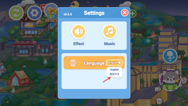 1、启动糖果梦想小镇游戏后,先进入设置菜单进行相关调整。