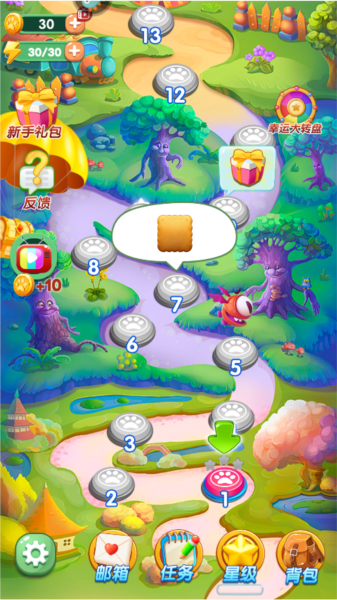 4、在每个关卡中,都有特定的目标和每步所能走的次数限制,如果超过步数限制,就无法获得三星评级。