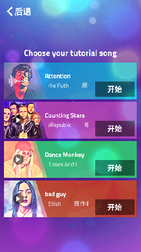 2、选择你喜欢的模式和音乐,点击“开始”开始游戏。