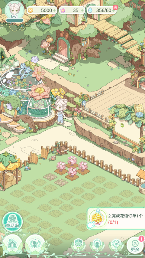 参加限时活动来收集种子,并与朋友交换灵感碎片,种子种下后,玩家可以选择平静地等待,让它们随着时间自然生长,体验那种缓慢的乡村诗意,玩家每天只需轻轻点击屏幕,将各种神奇的种子埋入岛屿的柔软土壤中,还可以使用游戏中的加速道具让植物快速成熟,瞬间覆盖整个草地,获得极大的成就感,当花园里布满了五颜六色的花朵时,玩家就可以进入最具创意的部分,童话创作。