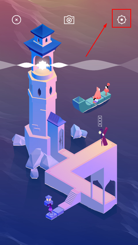 1、首先打开纪念碑谷3免费完整版游戏,进入主界面后点击左上角的小点,再点击“设置”按钮;