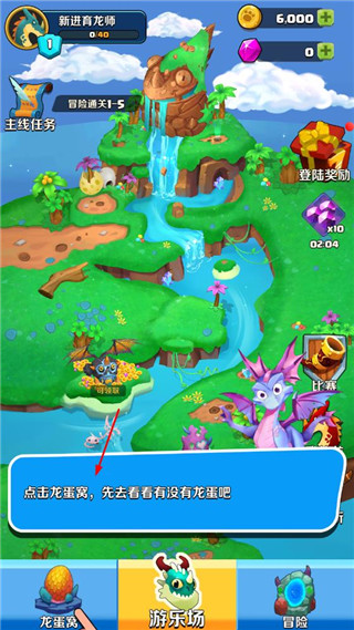 1、第一次在本站下载安装育龙达人游戏,打开运行进入游戏,点击龙蛋巢,先查看是否有龙蛋。
