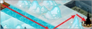沿着中间的冰冻道路前进,落水后可以清除最初河中的主角石像。